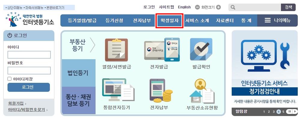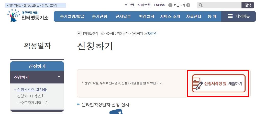 두 번째는 간편하게 인터넷등기소 사이트에서 확정일자를 받는 것입니다. 아래 순서대로 차례차례 실행해 보시면 어렵지 않게 확정일자를 받으실 수 있습니다. 인터넷등기소를 통한 확정일자 받기 수수료는 500원입니다.